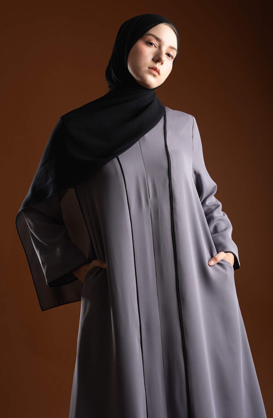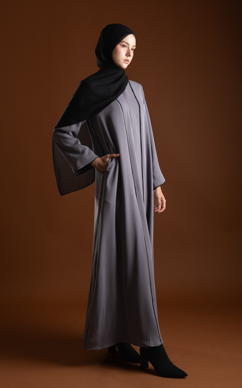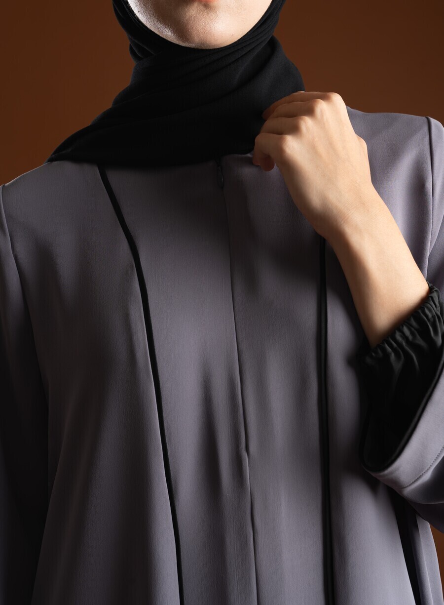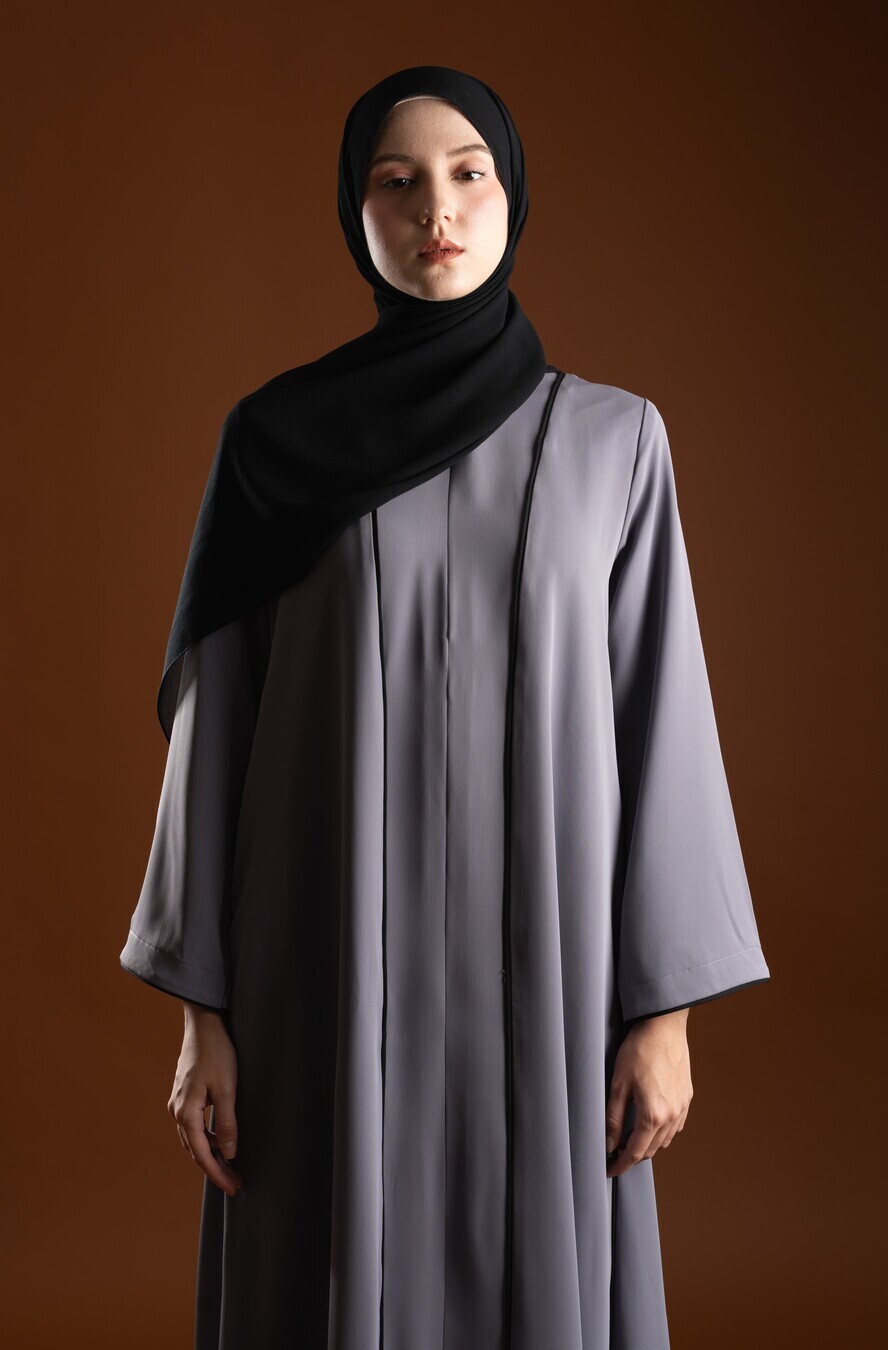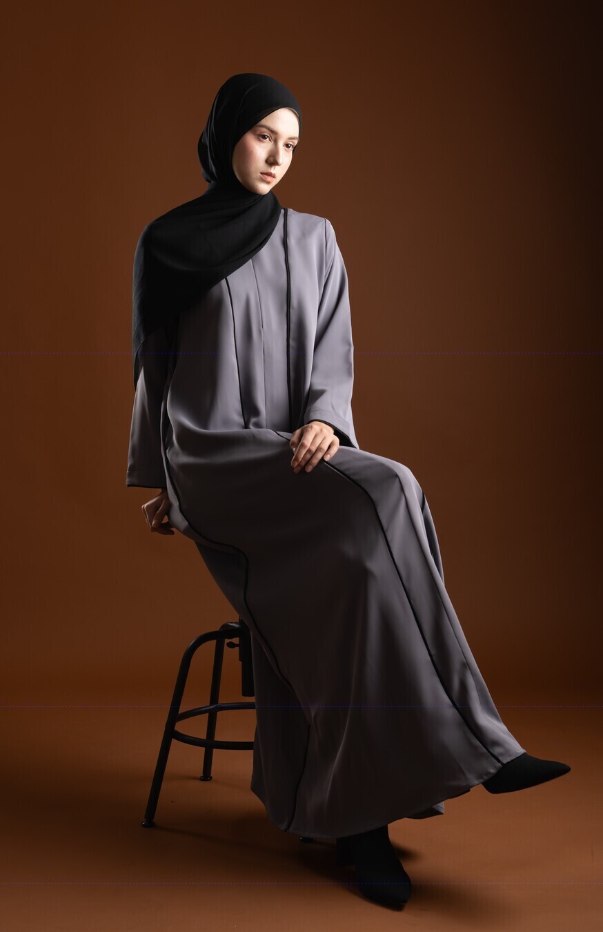 Bahan kain Cotton mix Poliester mewah dengan handfeel lembut, jatuh flowy dan halus, tidak panas , cenderung nyaman, Kain yang sama digunakan di series Rauda, High quality, dengan tipikel kain premium halus , list warna hitam, saku sisip kanan dan kiri, Bukaan depan resleting depan, bagian lengan DILAPIS LINING KATUN hitam halus yg diberi karet manset inner , sehingga lengan Luar yg cutting Lonceng aman dari singkapan, jadi nggak pakai inner lagi ya, cutting melebar ke bawah, simple elegan, tipikel kain yg ringan tapi mantep rapat, Ironless juga ya ini kain, buat safar sat set banget.