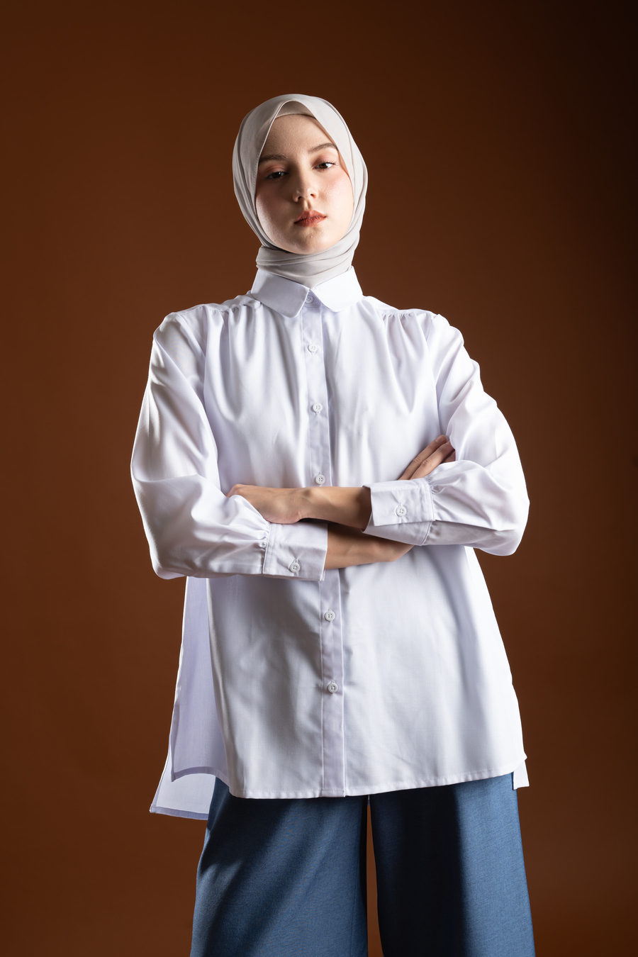 Bahan Toyobo fodu 100% Cotton, tidak transparan, flowy, permukaan kain halus, best buat daily, adem ,tidak gampang kusut cocok buat daily office juga, kerut lipit manis depan & belakang pola bikin nyaman, kerah manis dengan kancing hidup bisa dibuka semua, wudhu friendly.