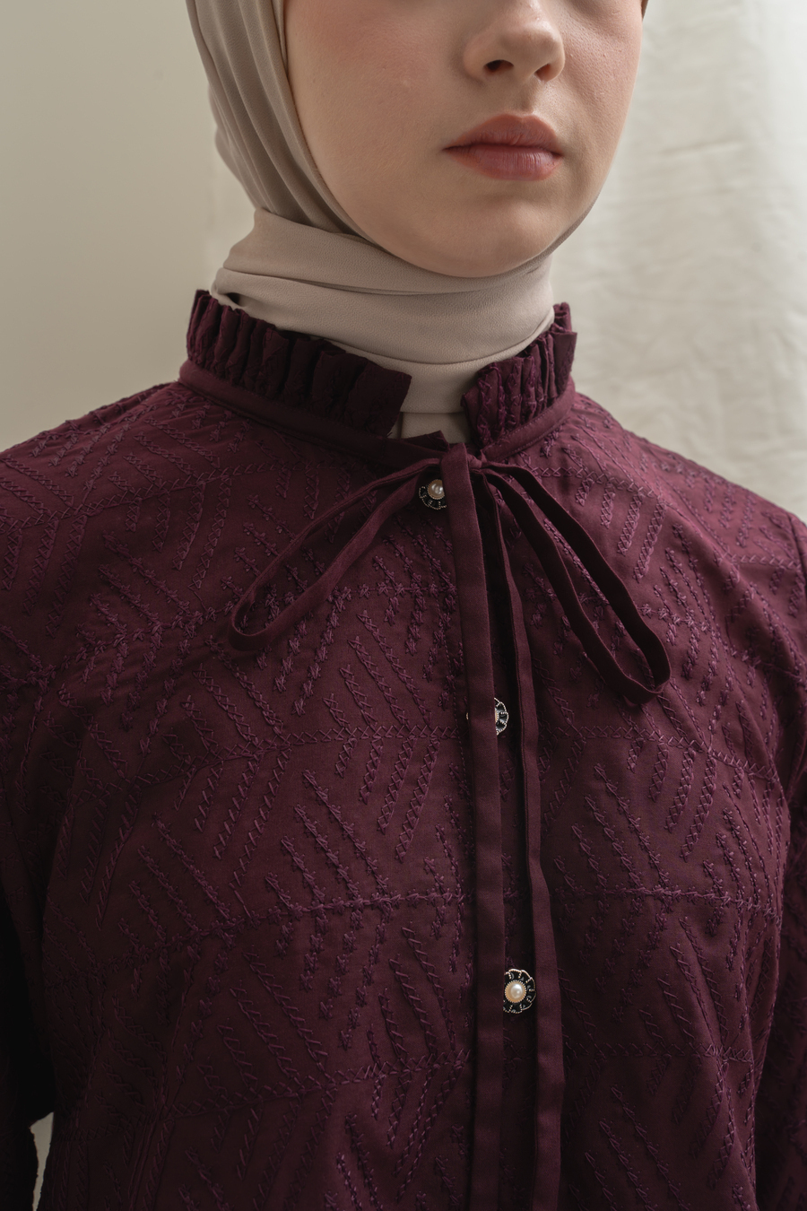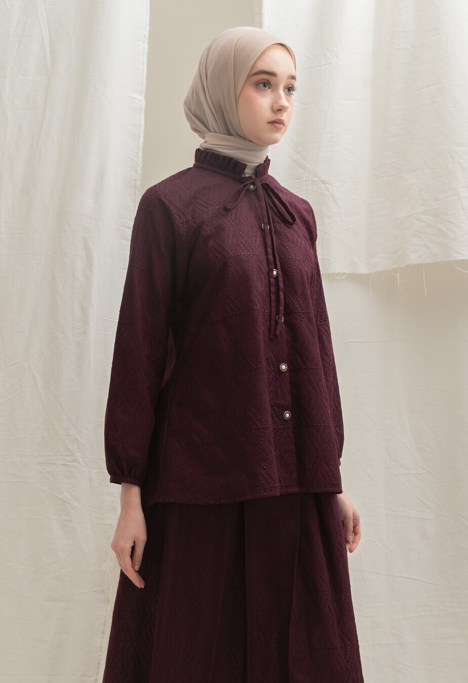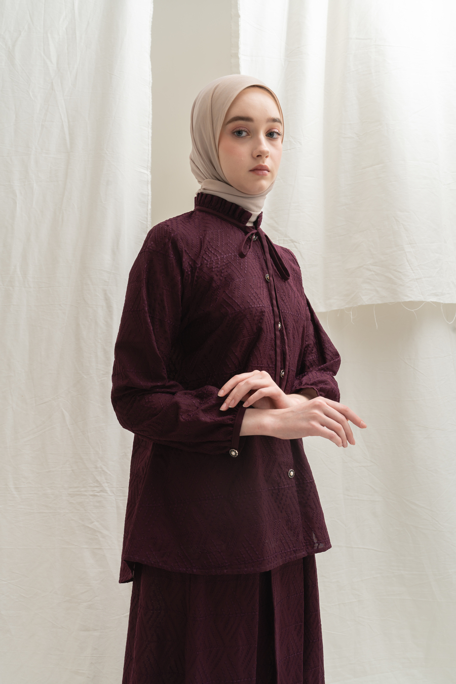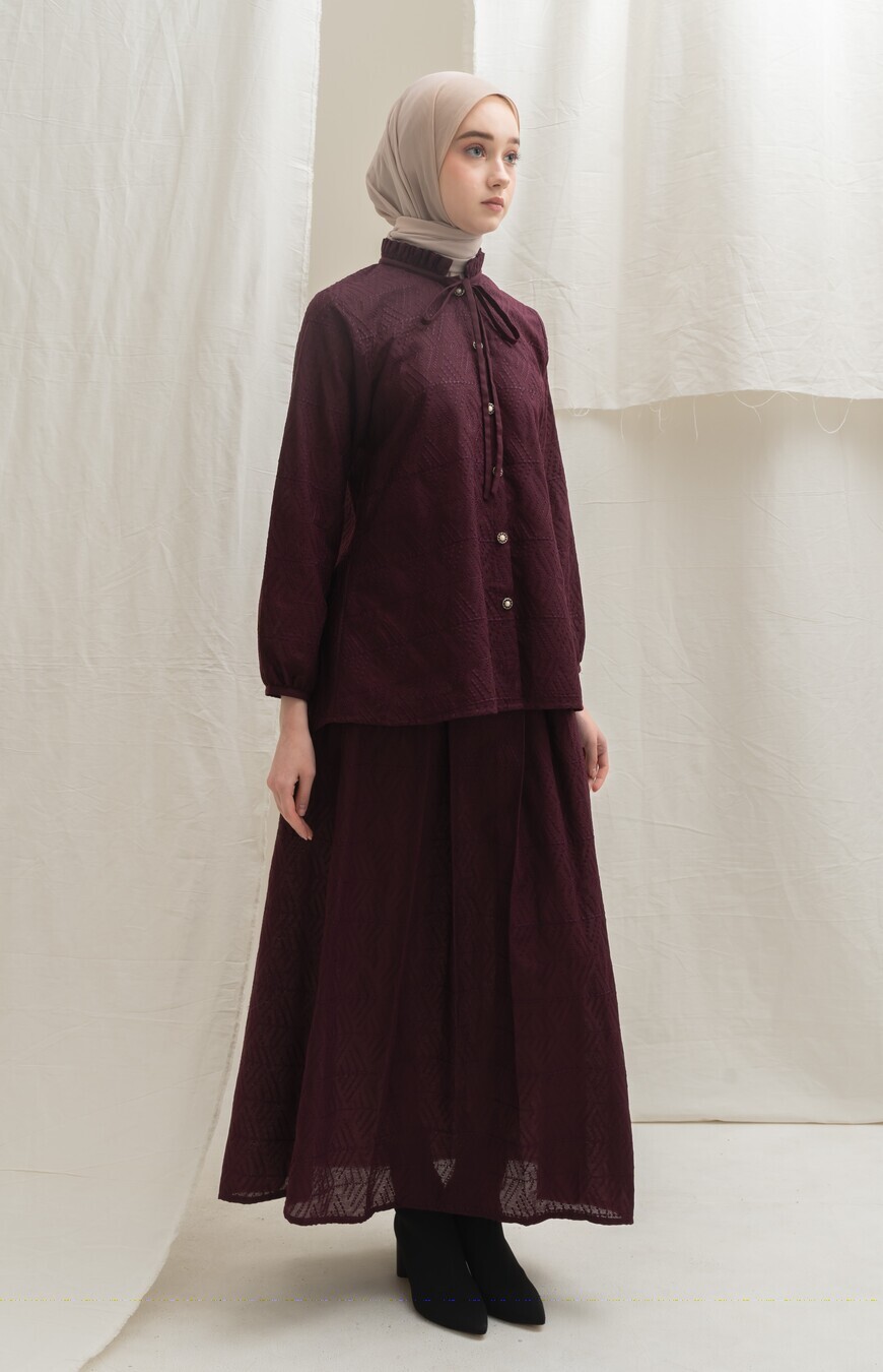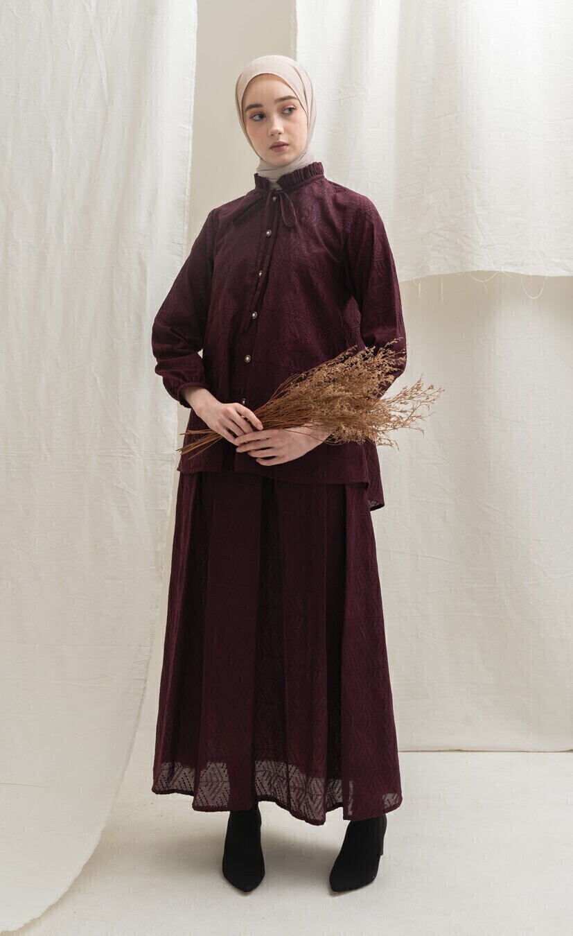 Bahan Katun Bordir klasik, motif bordiran lihat di Zoom ya, frills manis kerah dan Tali yang bisa di Pita manis, padukan dengan Deena skirt atau Yeeza Skirt , look elegan simple tapi stand out, lengan kancing bisa dibuka, wudhu friendly , kancing depan bisa dibuka / hidup. Cutting belakang lebih panjang dan melebar dibawah, super nyaman dengan cutting yang membuat slim look . Rok dibeli terpisah