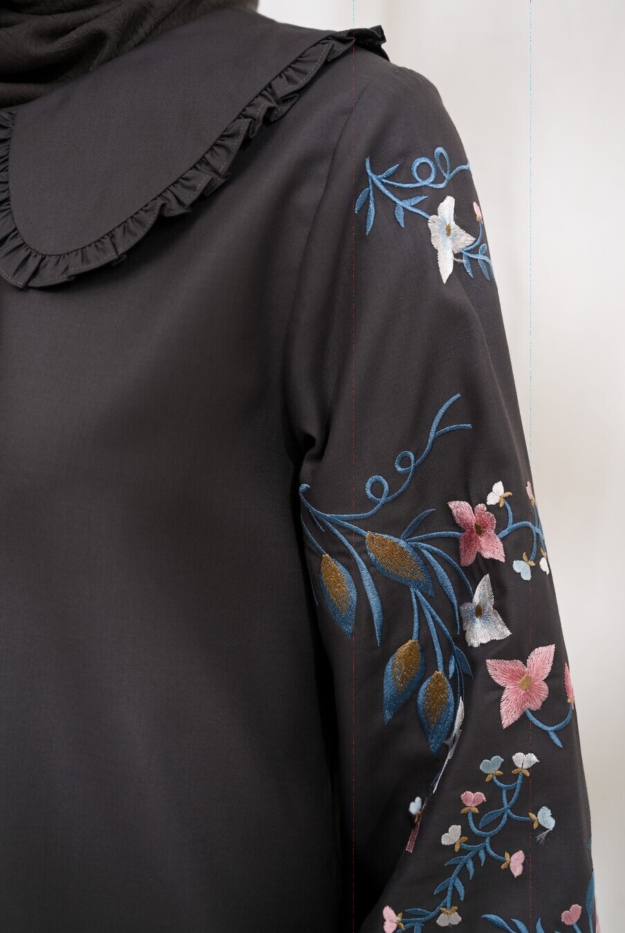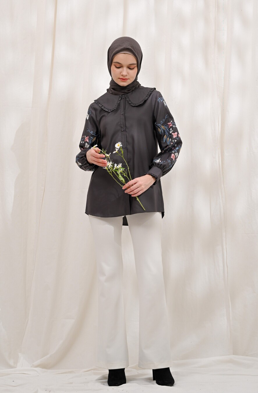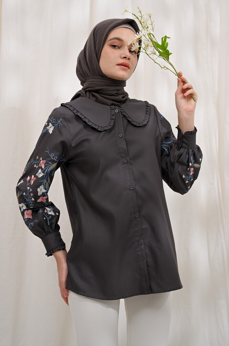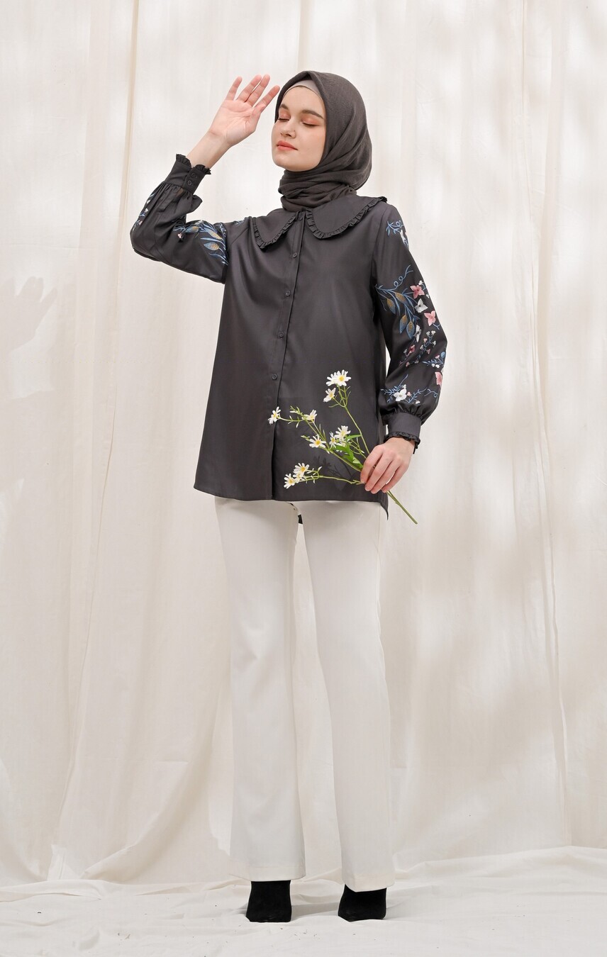 Blus Lura Bordir Charcoal Grey