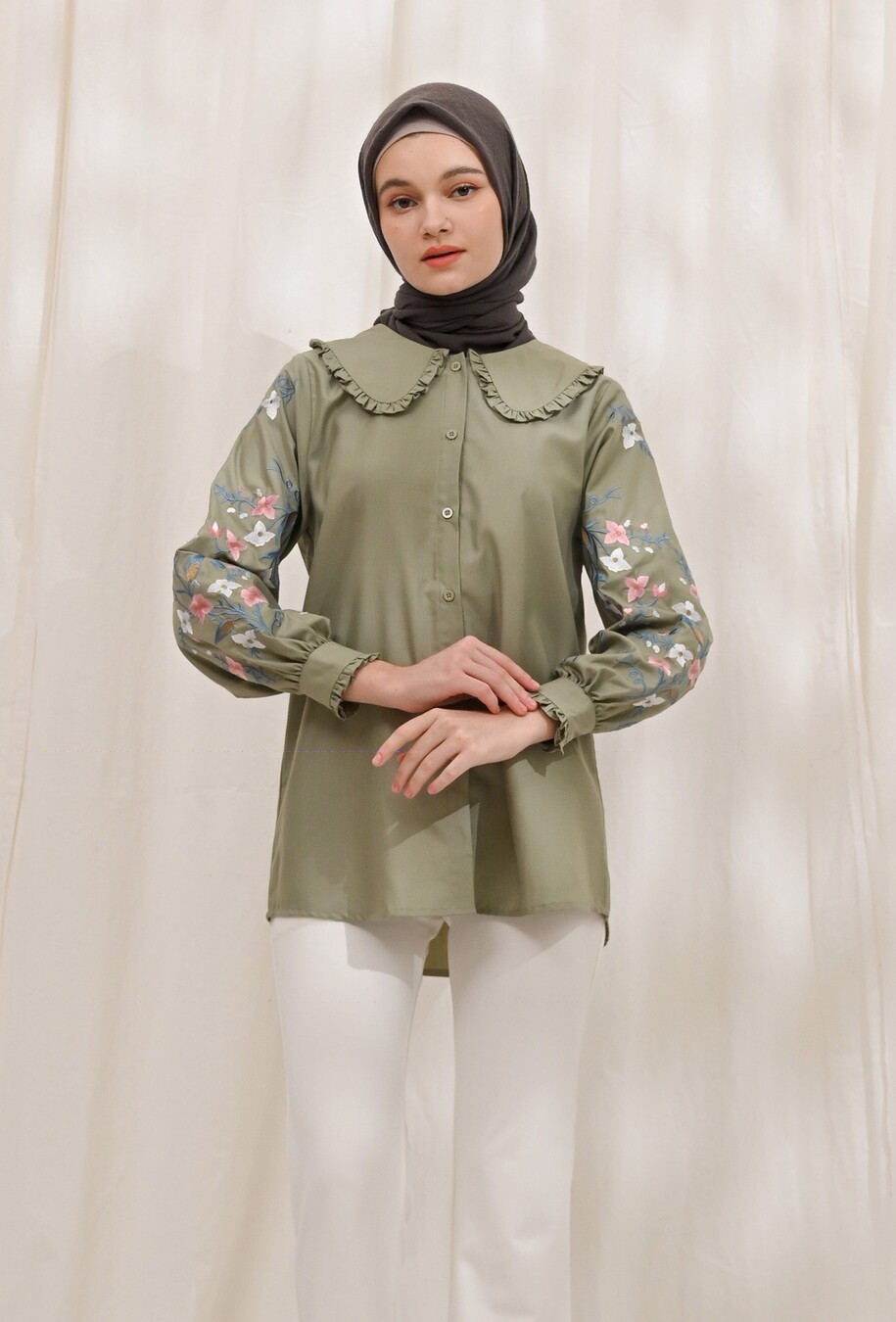 Bahan Toyobo Fodu kualitas ter atas, halus dikulit, anti lecek super adem, tidak tipis, sangat nyaman buat daily, aplikasi bordir halusan khas gaclukan dengan tone warna gradasi yang super cute, ditambah statement of Vintage look dengan frills kerah manis, kancing depan bisa dibuka semua, BUSUI friendly, lengan manset dengan frills maniss, BEST PRICE. karena Jahitan HALUS, Kualitas bordir halusan, bahan kain katun terbaik punya.