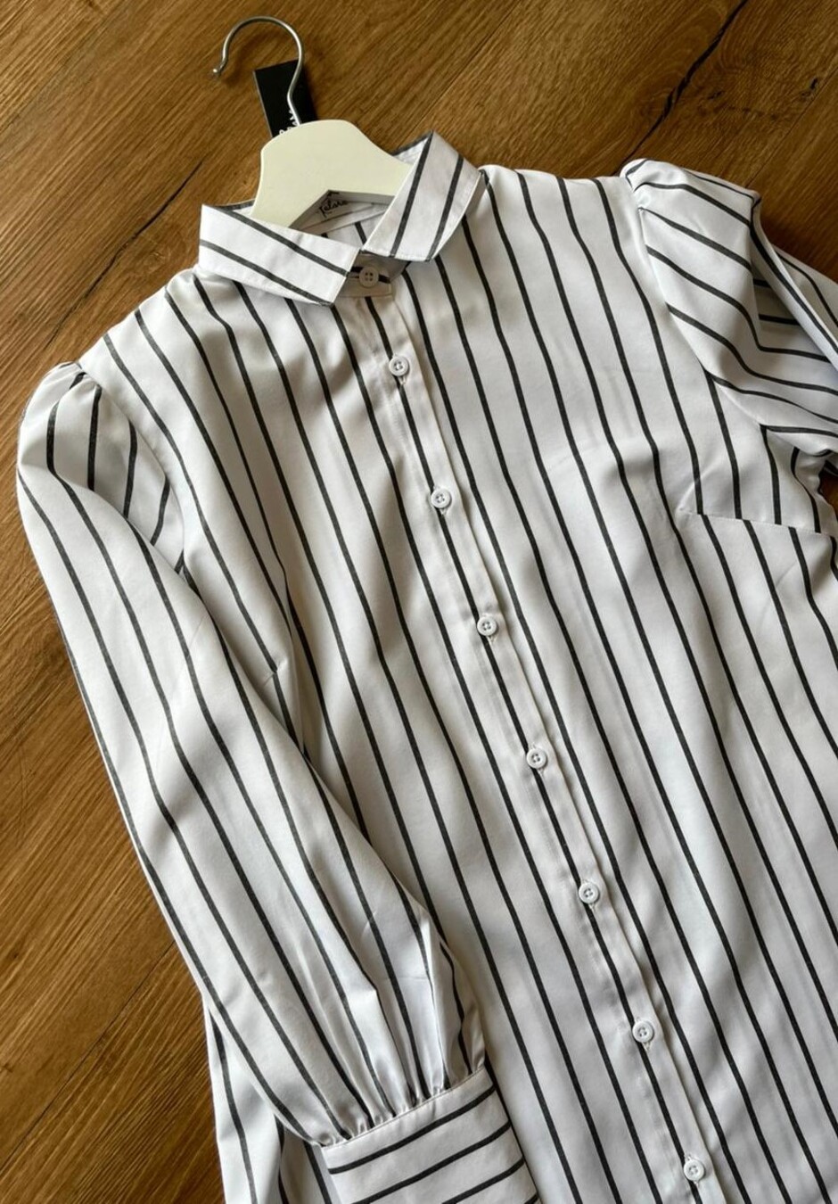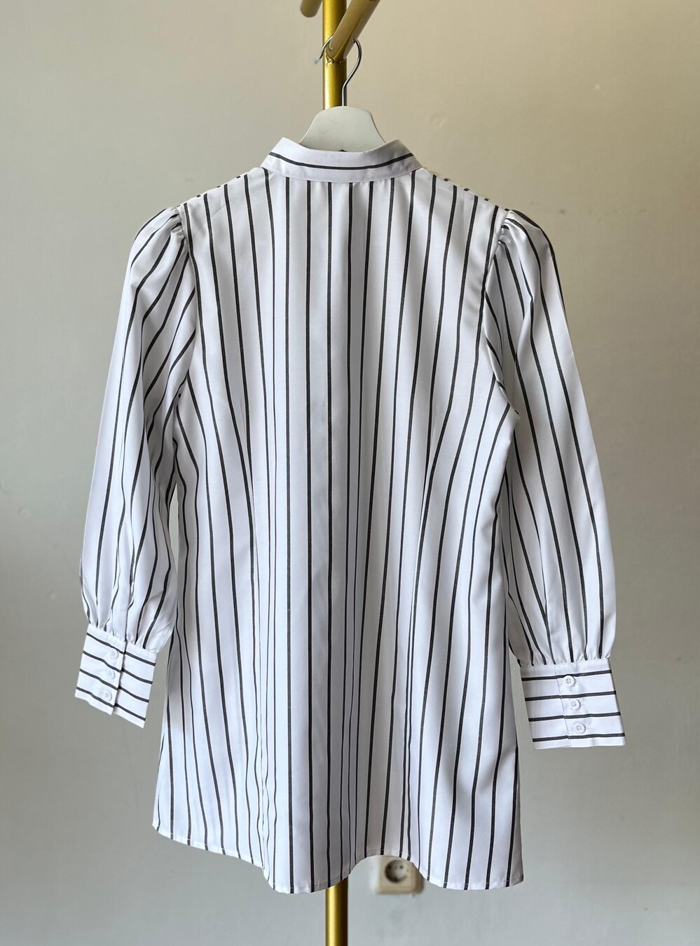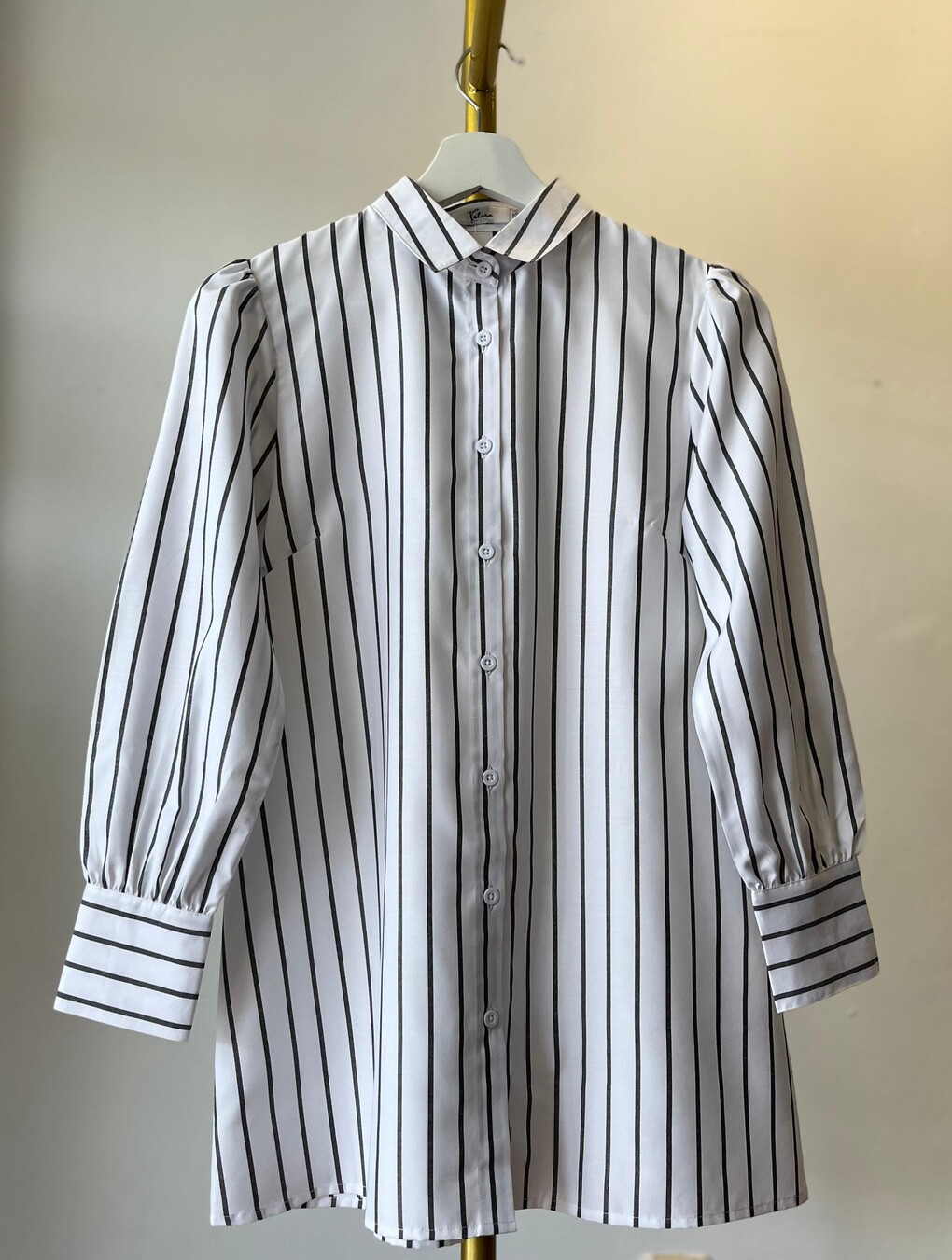 Bahan Katun lokal, dengan motif stripe, breathable, jahitan setik balik Velya series by kalara, kupnat depan dan belakang buat look fit body sleek yg elegan. lengan wudhu freiendly dengan Puff manis yg enggak lebay