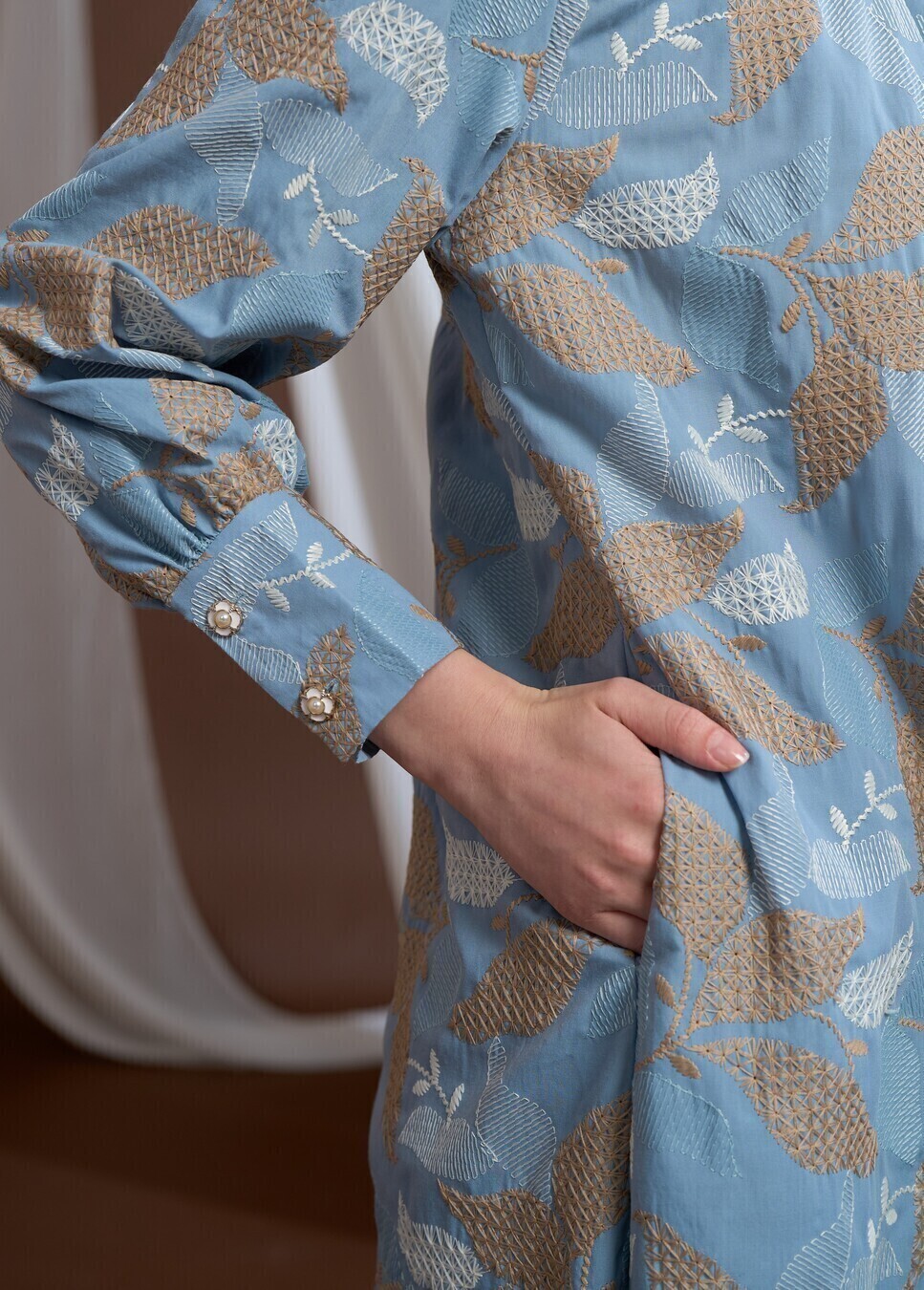 Bahan Katun Bordir , dengan motif bordir yang cantik, klasik timeless , cutting Lara dress dengan lipit dada manis, resleting belakang, dengan saku sisip kanan, lengan wudhu friendly, puff manis pundak, item must have untuk banyak acara. kesan humble bersahaja berkelas dengan cutting ini.