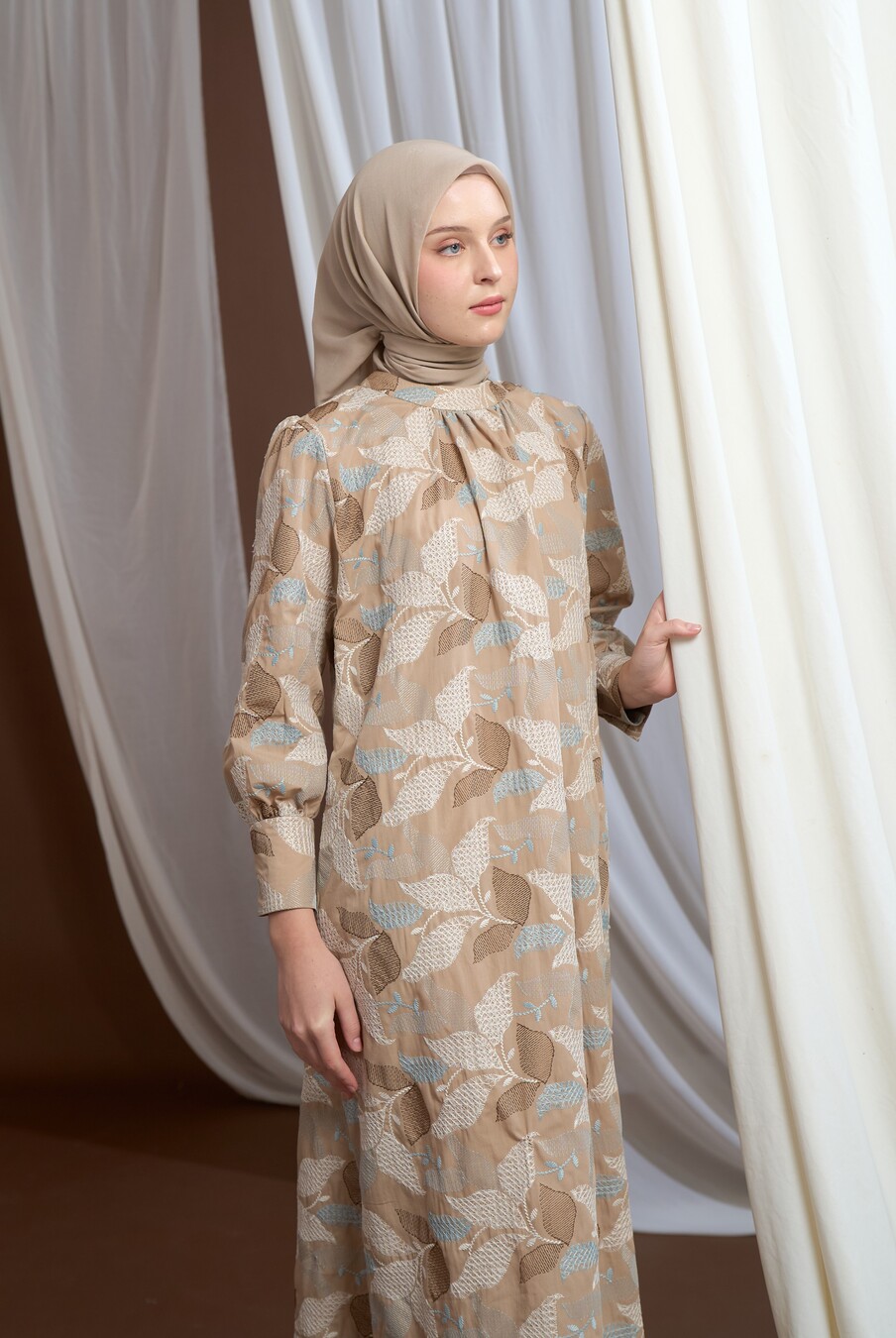 Bahan Katun dengan aksen Bordir yang halus, dengan motif bordir yang cantik, klasik timeless, cutting Lara dress dengan lipit dada manis, resleting belakang, dengan saku sisip kanan, lengan wudhu friendly, puff manis pundak, item must have untuk banyak acara. kesan humble bersahaja berkelas dengan cutting ini.