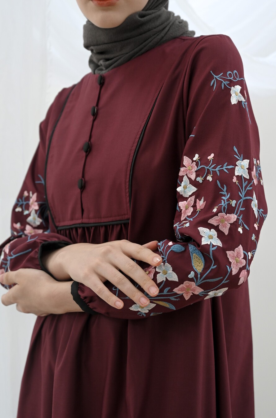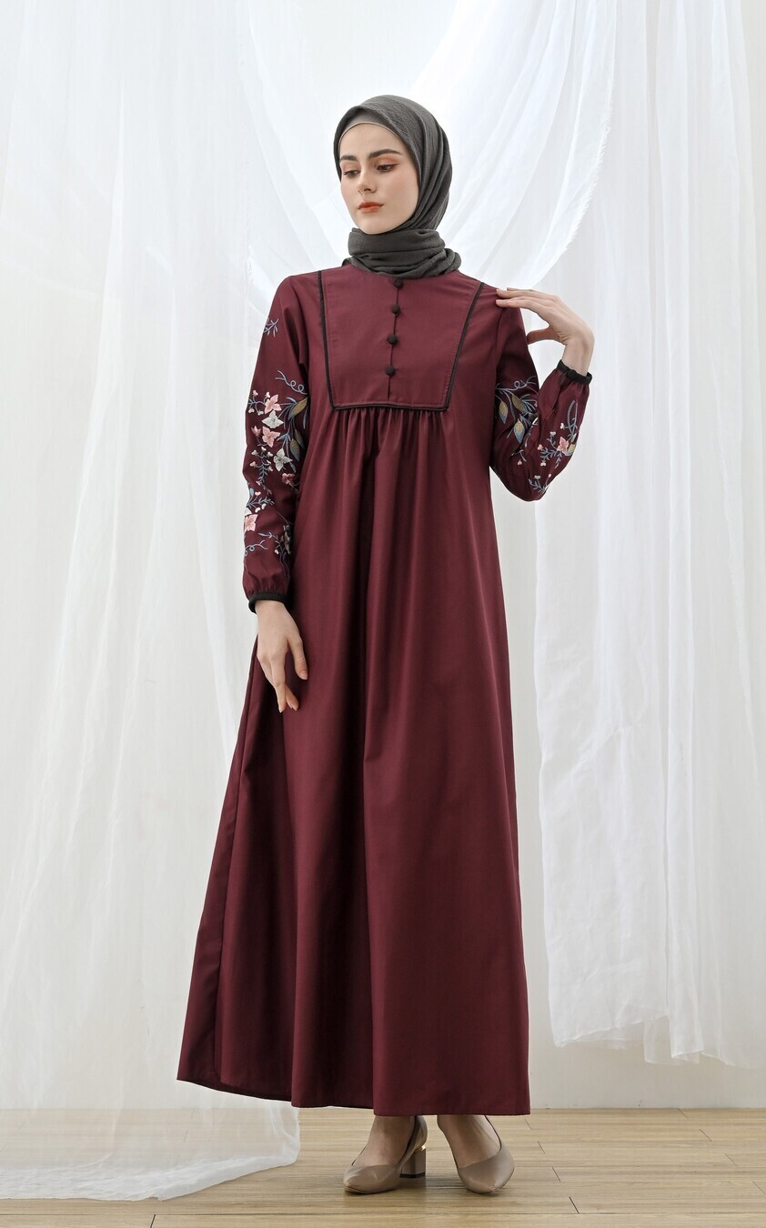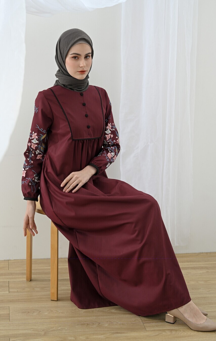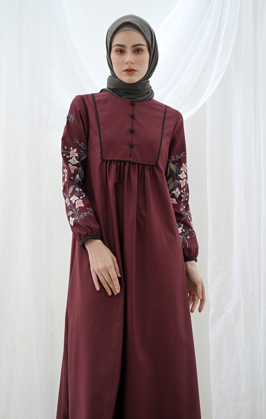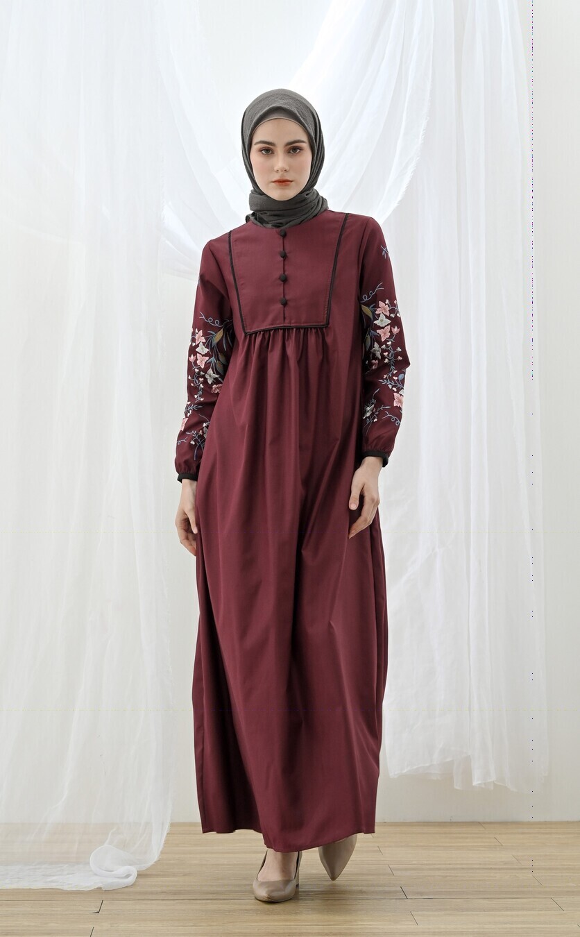 Bahan KATUN toyobo fodu Original, kualitas kain halus, tidak menerawang, lembut dan menyerap keringat sangat baik , tekstur kain tidak mudah kusut, sangat nyaman, FLOWY dan kainnya jatuh kece, digunakan untuk daily activities, walaupun Full day outdoor super Comfort. aksen Lipit depan elegan, dan list manis, kancing Bungkus didada bisa dibuka semua ya, lengan manset kancing, aplikasi Embroidery halusan di lengan , bordir dengan kualitas tinggi dengan design floral manis yang klasik dan vintage, terdapat saku sisip kanan gamis, jahitan Halusan In House dari workshop kami yang dikerjakan oleh para Tailor ahli, Bukan Jahitan Massal, yg ini halusan punya yaa, lengan dalam kiri dan kanan Dilapis TRIKOT kualitas atas yg lembut.