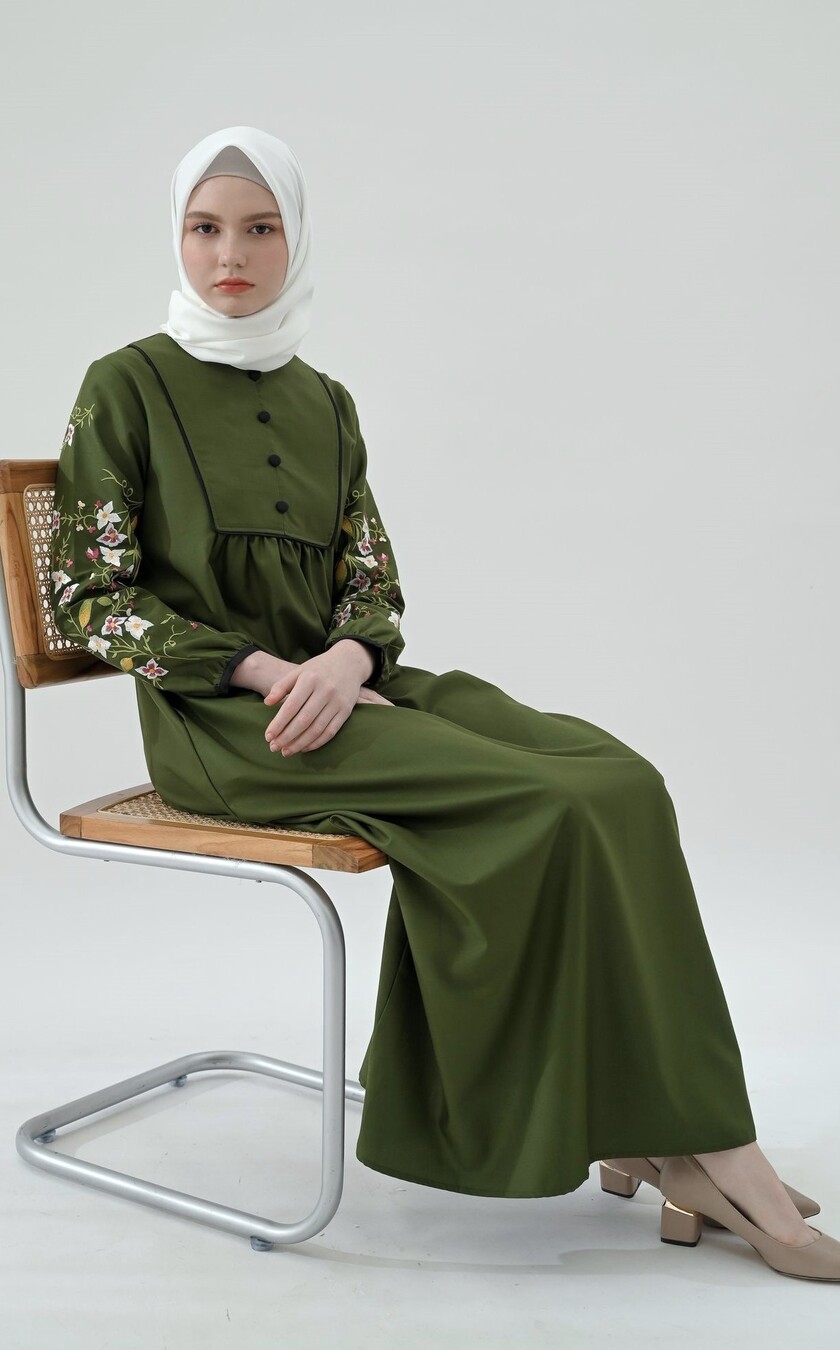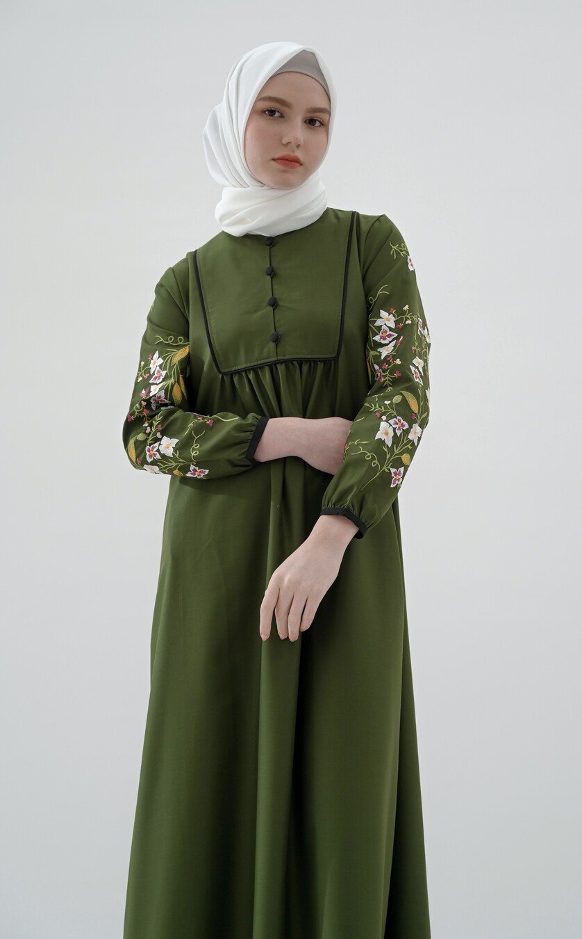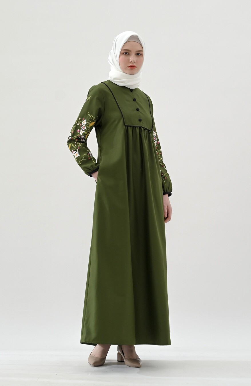 Bahan KATUN toyobo fodu Original, kualitas kain halus, tidak menerawang, lembut dan menyerap keringat sangat baik , tekstur kain tidak mudah kusut, sangat nyaman, FLOWY dan kainnya jatuh kece, digunakan untuk daily activities, walaupun Full day outdoor super Comfort. aksen Lipit depan elegan, dan list manis, kancing Bungkus didada bisa dibuka semua ya, lengan manset kancing, aplikasi Embroidery halusan di lengan , bordir dengan kualitas tinggi dengan design floral manis yang klasik dan vintage, terdapat saku sisip kanan gamis, jahitan Halusan In House dari workshop kami yang dikerjakan oleh para Tailor ahli, Bukan Jahitan Massal, yg ini halusan punya yaa, lengan dalam kiri dan kanan Dilapis TRIKOT kualitas atas yg lembut.