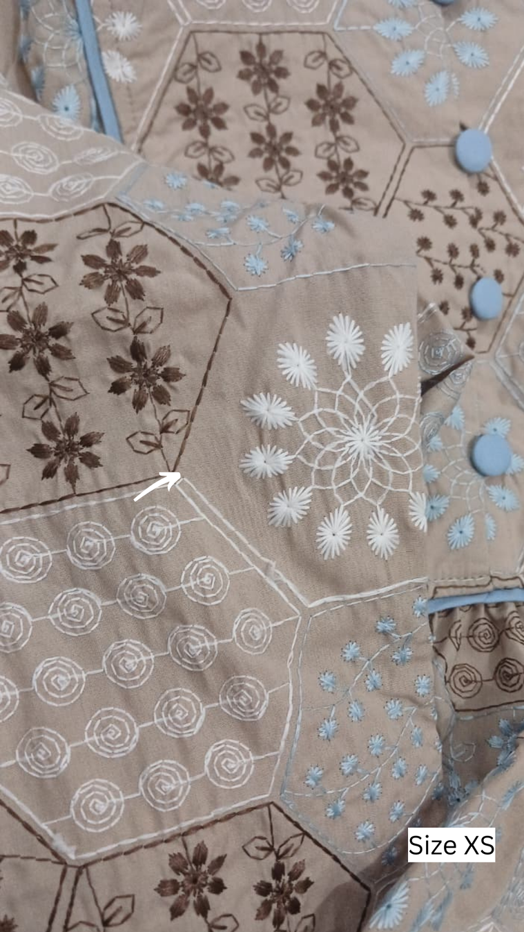 Bahan Katun Bordir dengan motif bordir penuh dan klasik, pemilihan warna benang yang cantik dan elegan cutting flowy yang manis timeless, lipit depan signature Miranti Series by Kalara , kancing depan hidup bisa dibuka, saku sisip kanan, lengan wudhu friendly, finishing jahit tepi halus , jahitan berkelas halusan, Bukan konveksi Massal.