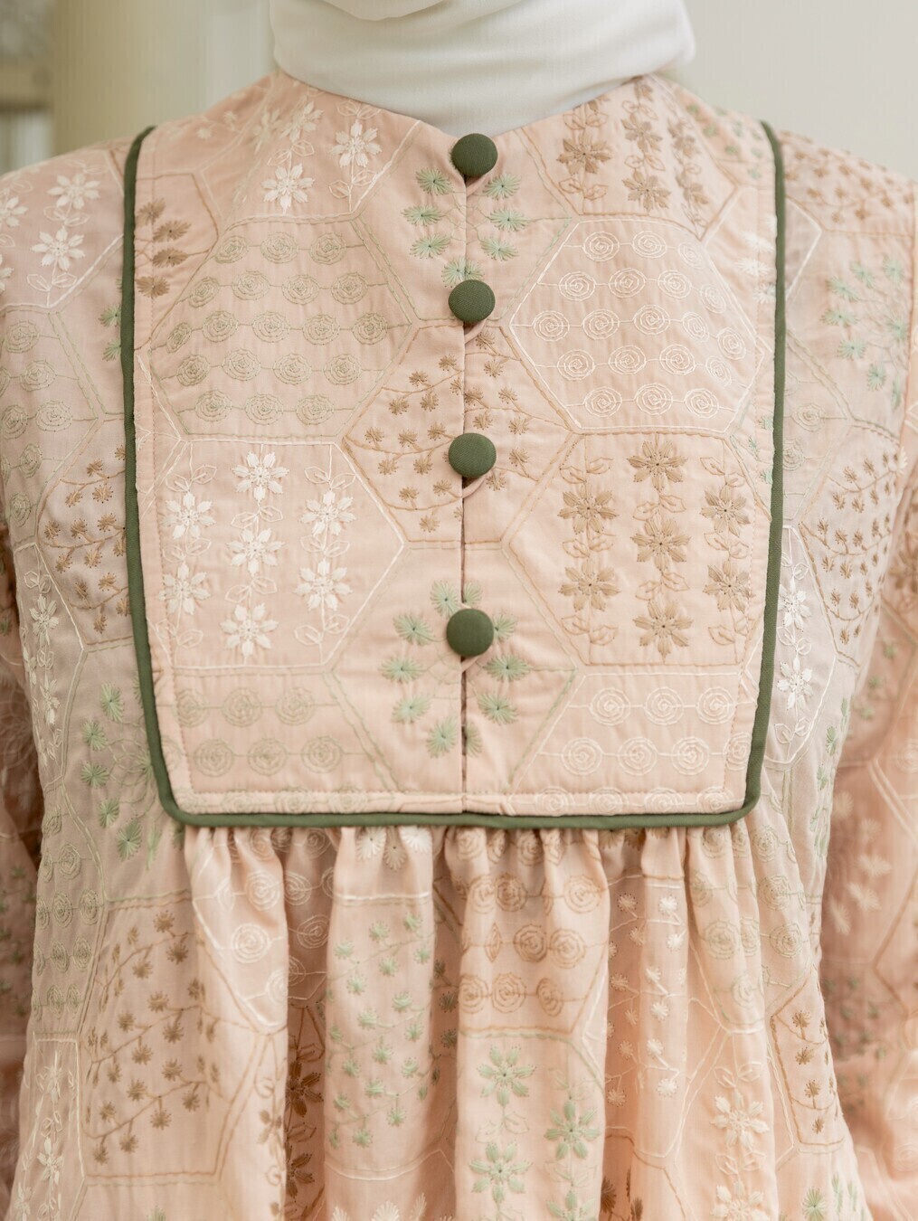 Bahan Katun Bordir dengan motif bordir penuh dan klasik, pemilihan warna benang yang cantik dan elegan cutting flowy yang manis timeless, lipit depan signature Miranti Series by Kalara , kancing depan hidup bisa dibuka, saku sisip kanan, lengan wudhu friendly, finishing jahit tepi halus , jahitan berkelas halusan, Bukan konveksi Massal.
