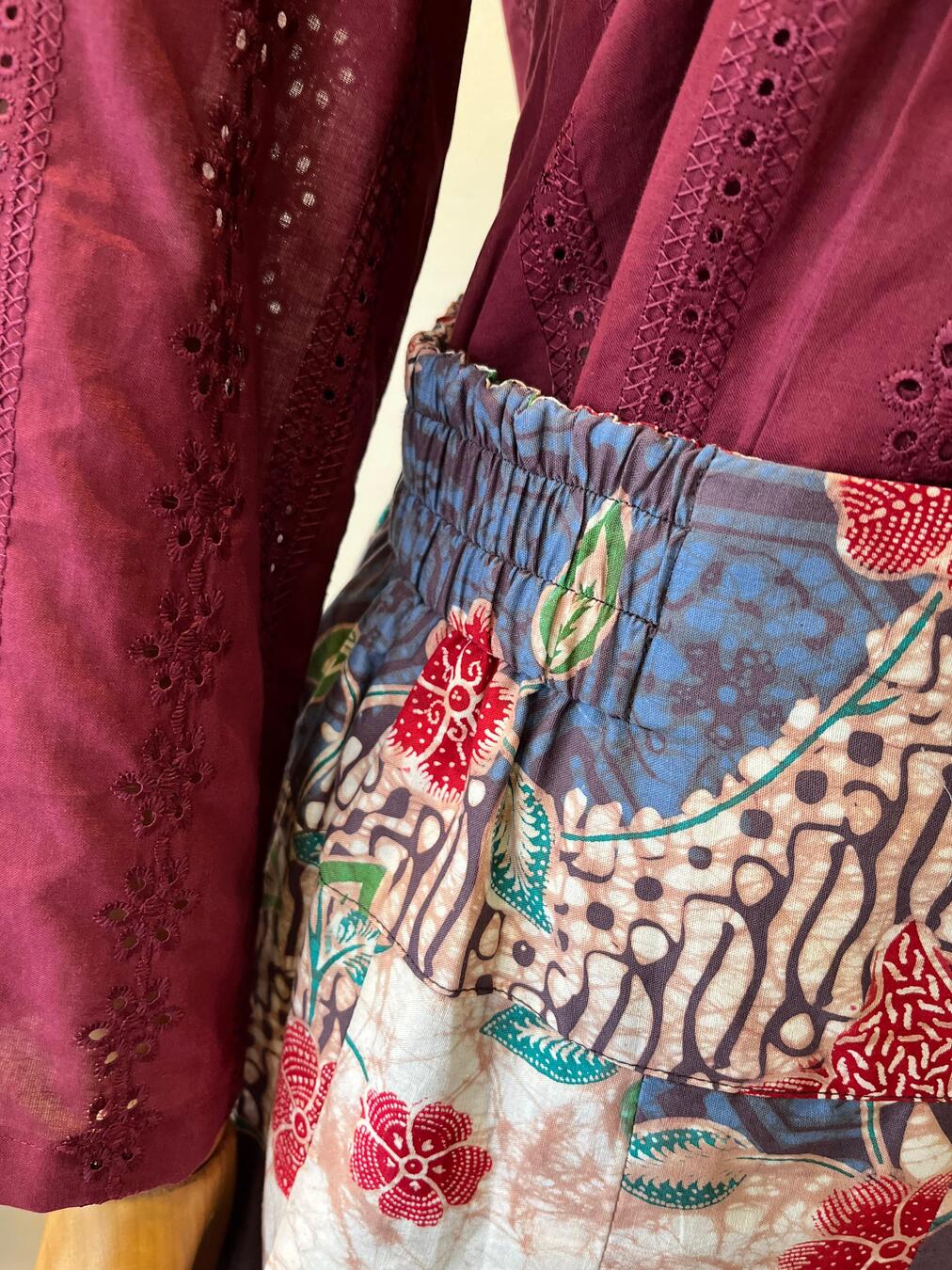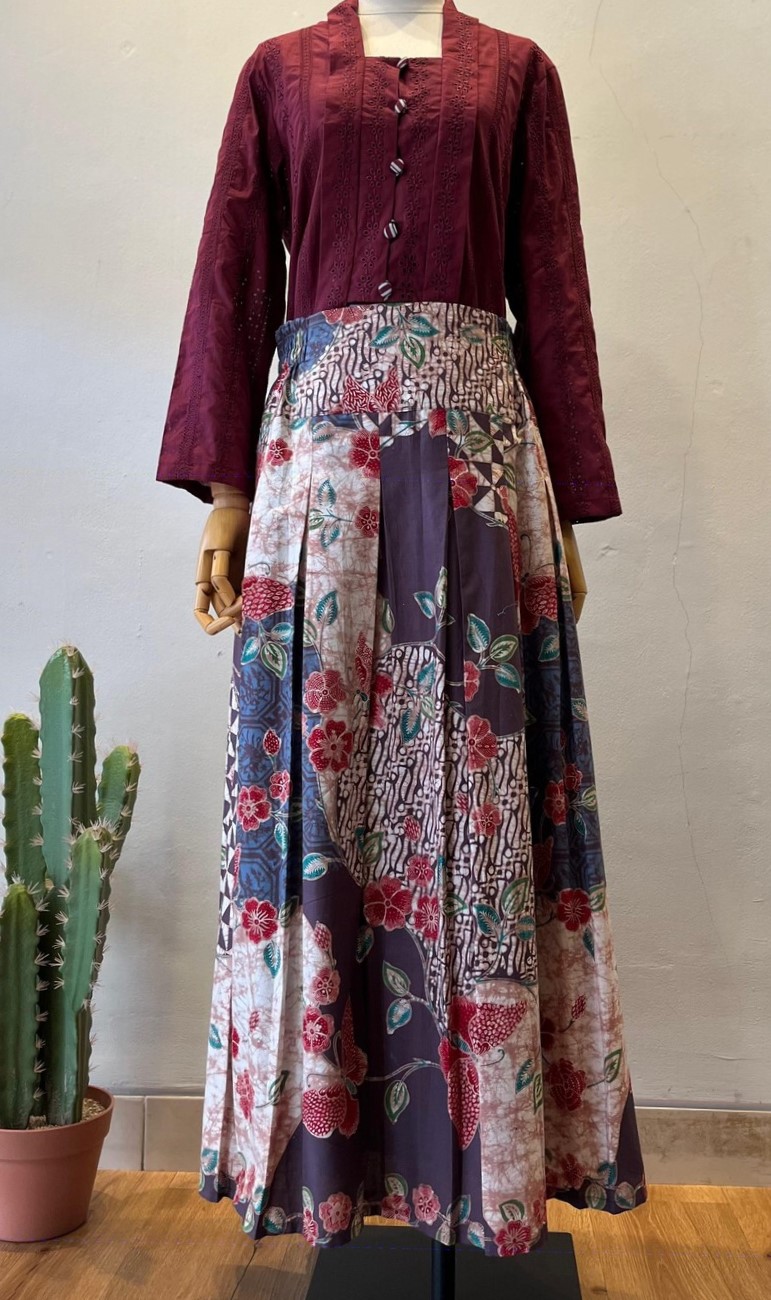 lingkar bawah rok 200cm. (Panjang puring 89cm, Lingkar bawah puring 152cm)