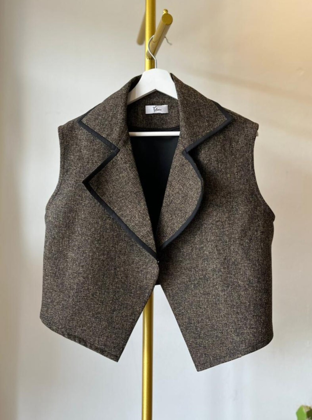Outer dengan lapis Lining trikot halus, kait depan bisa lepas pasang, cutting outer lebih Panjang di depan, dibuat bisa buat banyak size dengan jatuhnya depan blazer look, atau di kait atas menjadi Janggan. Cutting unik dan classy , padukan dengan Riva Skirt Rissa kain senada dan blus andelan ya.