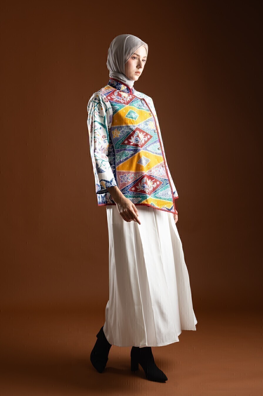 (L-XL) : Lingkar pinggang apa adanya 78cm, melar maksimal 98cm, Panjang 96cm, lingkar bawah rok 238cm.