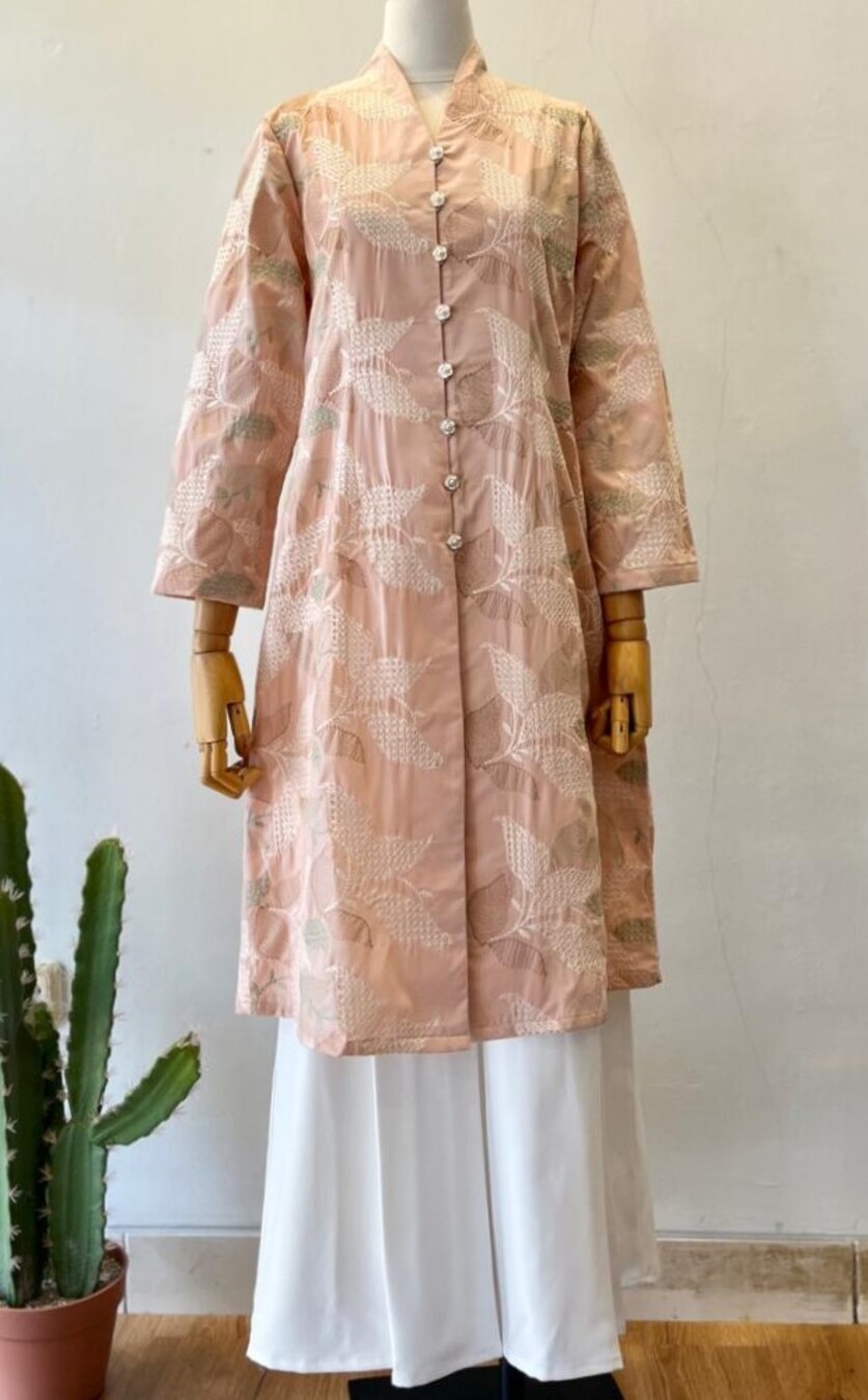 Bahan Katun dengan bordir penuh yg halus, cutting kebaya manis dengan Kupnat depan dan belakang sehingga cantik shaping kebaya, V neck anggun, panjang lengan sepergelangan untuk standar asia. padukan dengan Kulot polos atau kain wastra untuk look ethnic klasik.