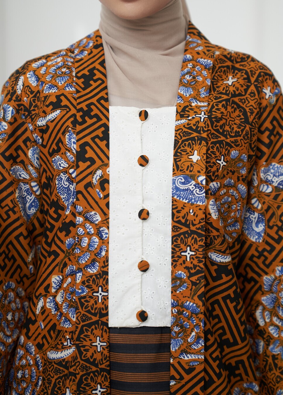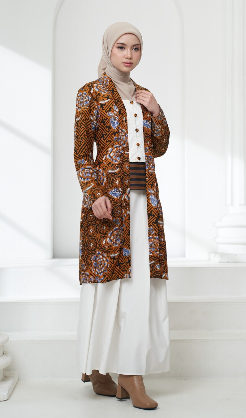 Motif batik encim Benji kece Sogan yang Klasik JARANG SAMAAN, lihat detil motif nya yaa, penuh motifnya, nggak ada ruang kosong, kutubaru kombinasian kain cotton bordir kece dengan plus include aksen Extender Obi dari tenun lurik yang bisa di lepas pasang, padukan sesekali dengan Jeans selain dengan kain untuk tampilan casual formal look yang nyentrik klasik, Skirt senada juga akan ada di web bisa di beli terpisah. harga di atas hanya atasan Kutubaru.