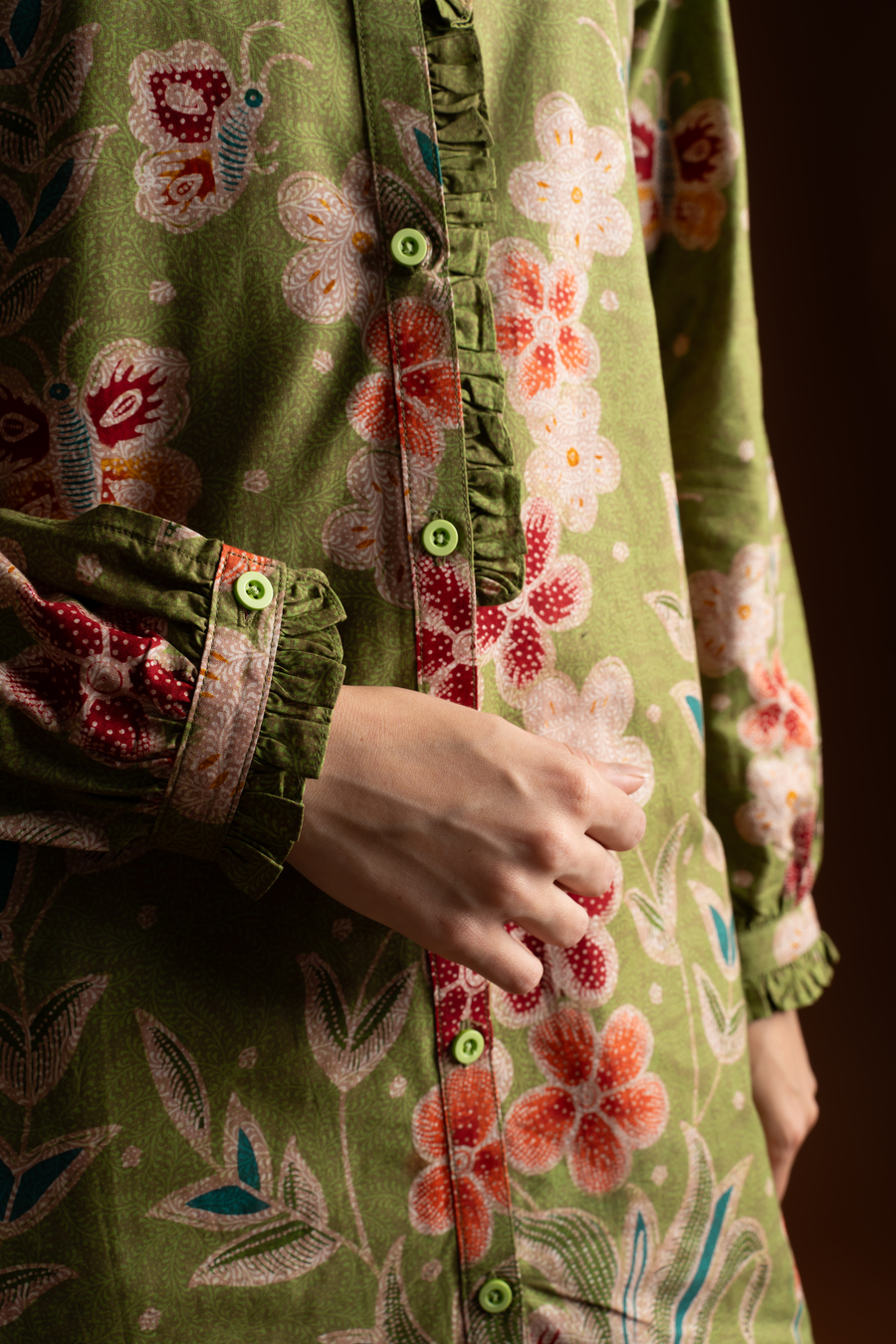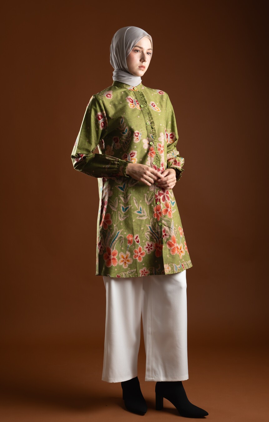 Batik TANAHAN Premium Kombinasian TULIS dengan Kain Katun bagus, hand made By Local Experts, dasar kain diberi motif batik juga, tidak ada ruang kosong di kain, semuanya dibubuhi batikan tjantik yang terlihat jika kamu nerima nanti ya KECE, LIMITED karena bikinnya pake lama untuk tiap lembar kainnya, bawahan dijual Terpisah, ini HANYA HARGA Tunik, jahitan halus , lengan dan depan aksen frills pergelangan, one of our best signature, Tunik Lyla Series by Kalara. Produk ini tanpa lapisan Trikot.